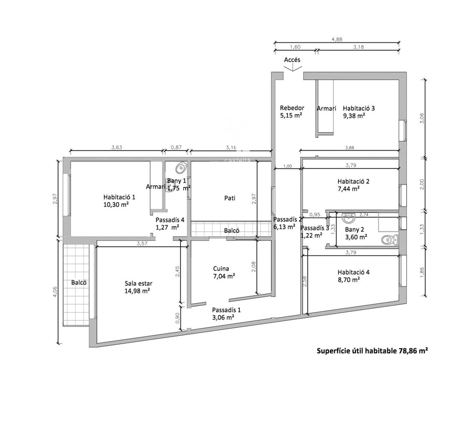 Excelente piso con ascensor en la Gran Vía de Premià de Mar, con 92m2 construidos y 78m2 útiles habitables.